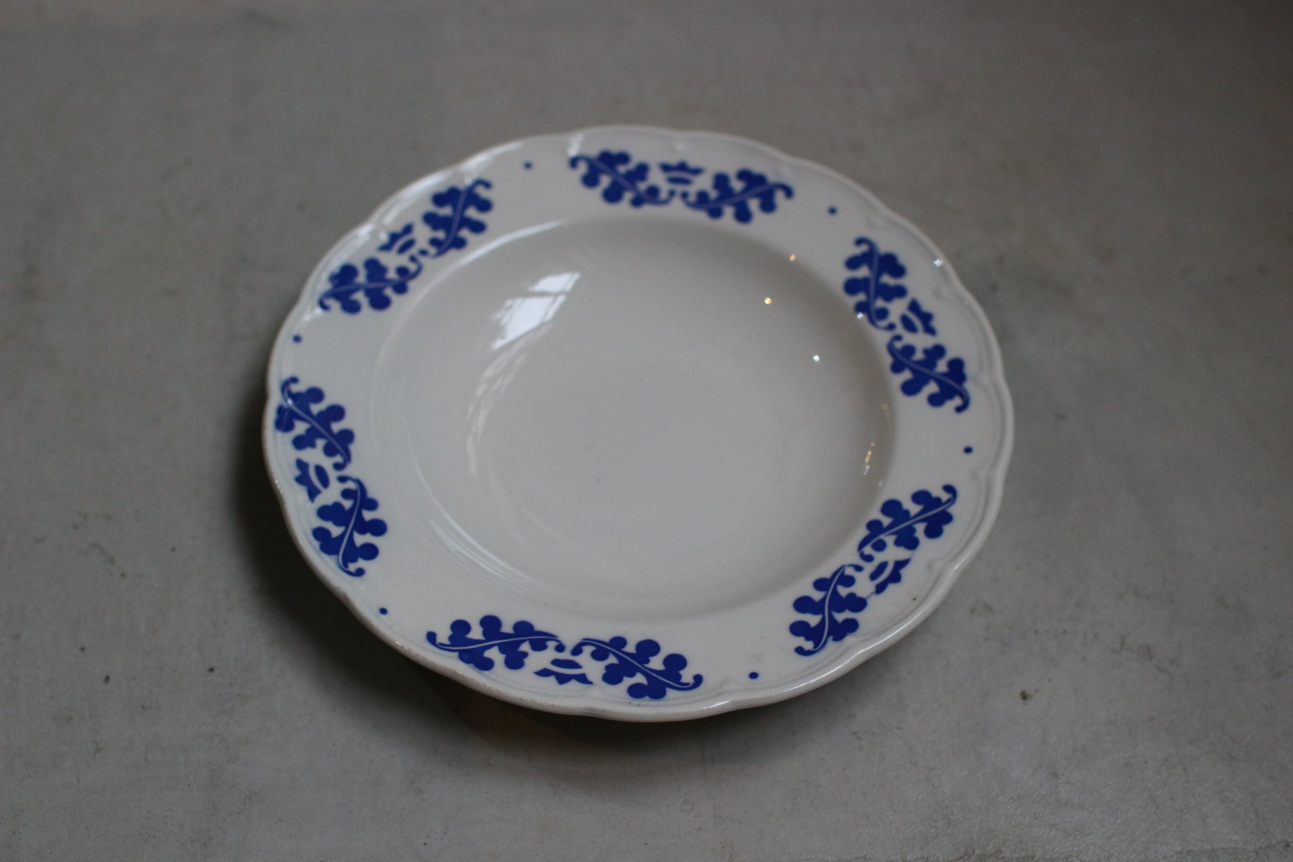 BOCHの美しさと機能性を兼ね備えたアイテムです。リム周りには凹凸のあるエンボス加工が施されており、職人による特徴的な手書きのブルーの絵柄は『樫の葉シリーズ』として知られています。